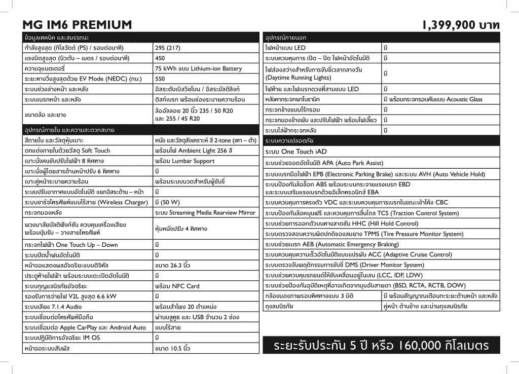 MG EXTENDED WARRANTY นาน 5 ปี หรือ 160,000 กิโลเมตร